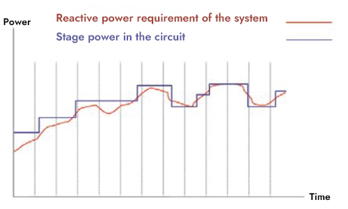 It is the process of activating the loads existing in the system to meet the reactive power needs of the enterprises. This activation process can be done in two different ways in compensation. The first of these is the switching type made with compensation contactors, which are electromagnetic switching elements called “Classical Switching“. Second one is called “Thyristor Switching” which is the switching made with SVC driver and static contactors.