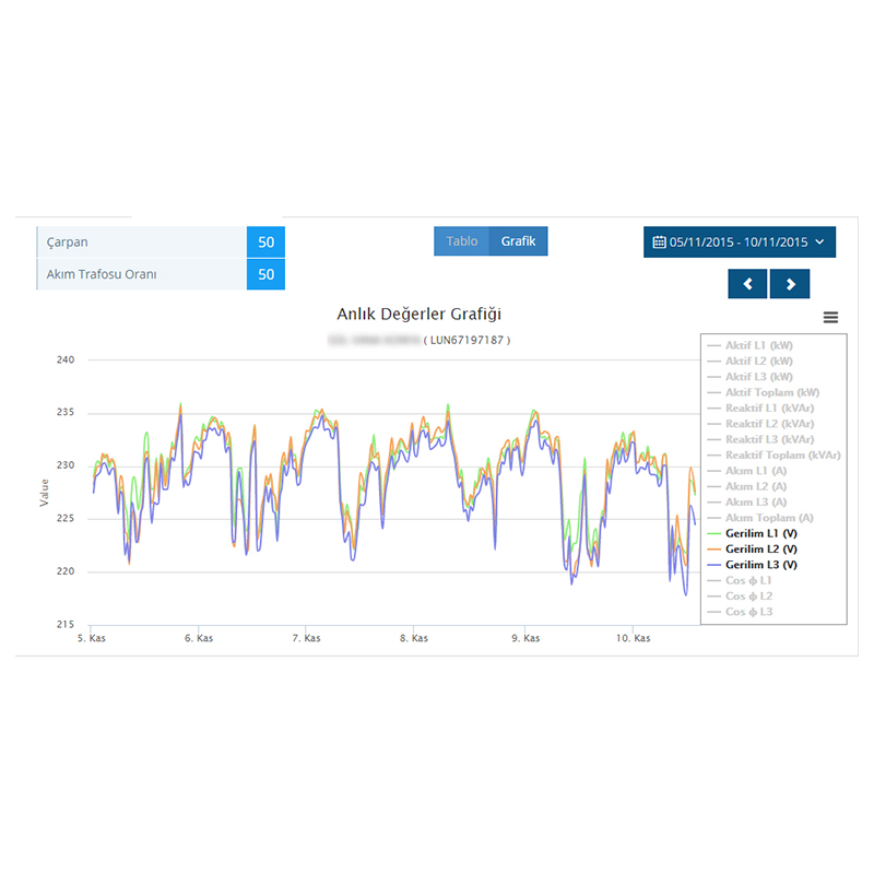 Reaktif oranları grafik üzerinde analiz edip problemlerin tespiti, faz kesintisi, gerilim düşmesi/yükselmesi, sayaç akım trafolarının bozulması gibi problemlerin tespiti veya rölenizi gerçek zamanlı olarak uzaktan kontrol edilmesi gibi daha birçok işlemler yapabilirsiniz.